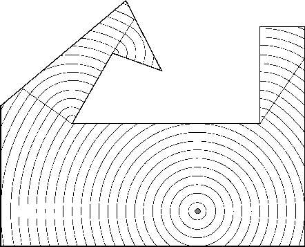 Wavefronts can also bend around corners, which is called diffraction; see Figure 11.2. This would enable someone to hear a sound that is around the corner of a building, without relying on any reflection or transmission. More diffraction occurs for longer wavelengths; thus, a lower-pitched sound bends around corners more easily. This also explains why we are more concerned about acoustic diffraction in a room than light diffraction, although the latter is often important for lenses (recall the Fresnel lens drawback of Section 7.3).